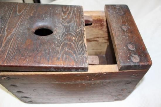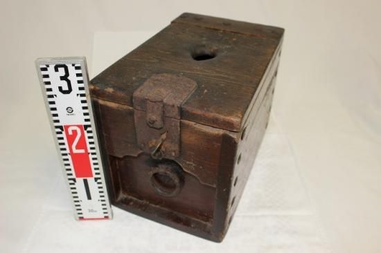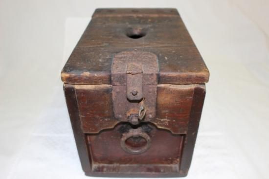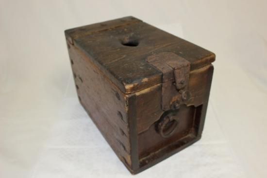 古い堅木造りの銭箱 可動鍵付