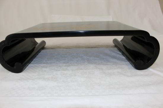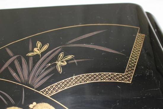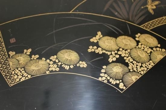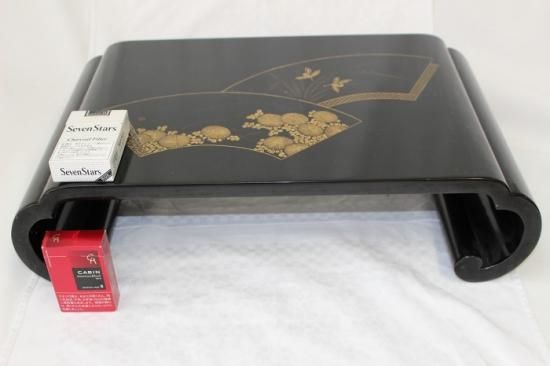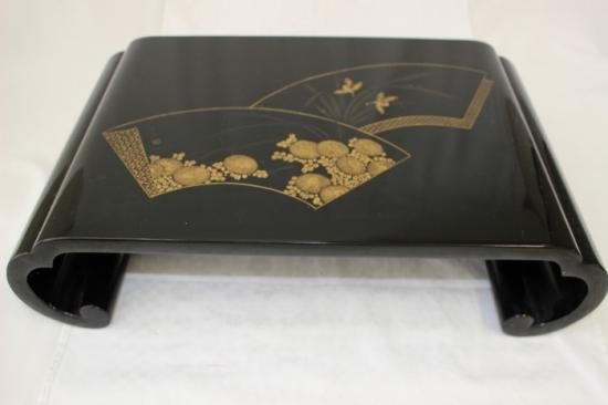輪島塗堅地扇文沈金蒔絵付 平卓花台 澤忠漆器謹製