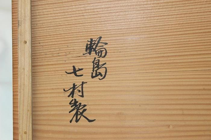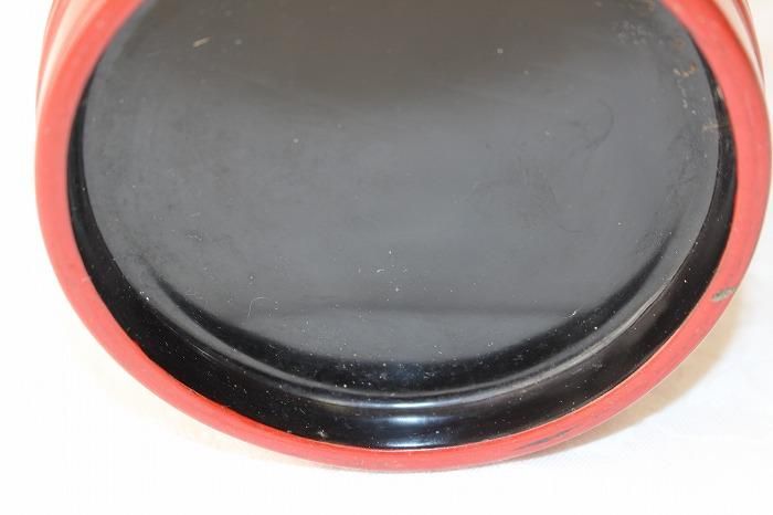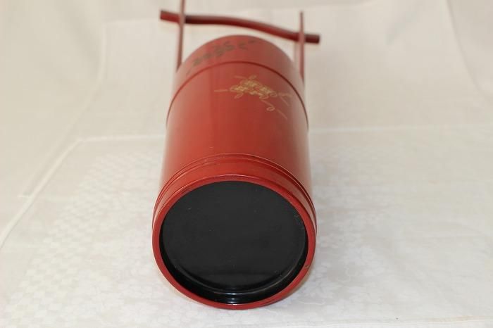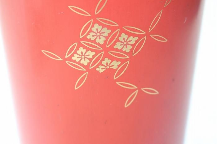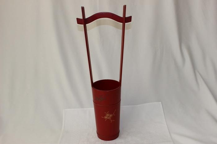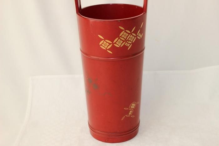 輪島塗堅地布着朱塗蒔絵付 手桶形花器 輪島七村謹製