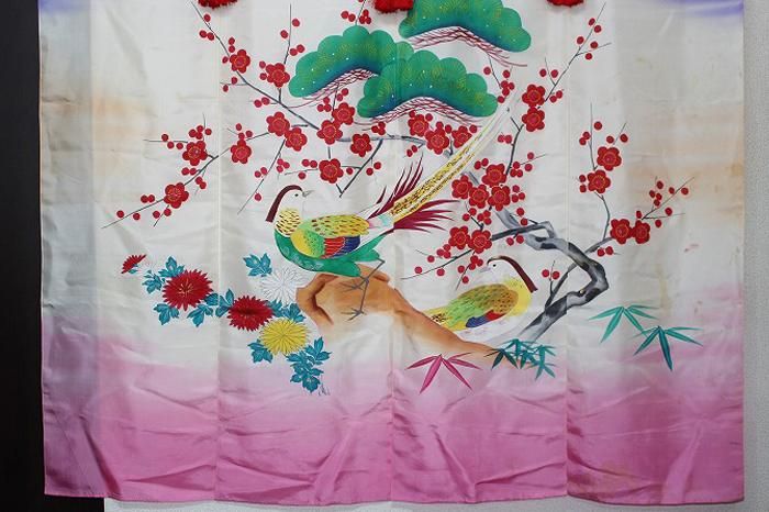 加賀花嫁暖簾松竹梅鴛文  正絹四巾 鷹の羽家紋付