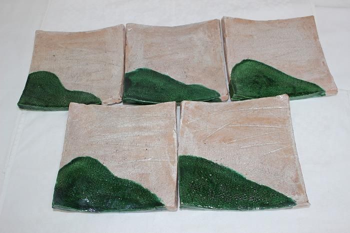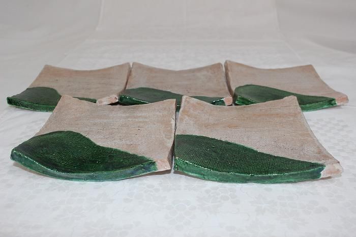 大樋焼彩釉菓子皿五客揃え 大樋長阿弥窯造