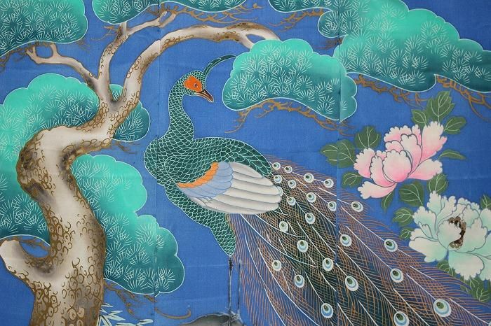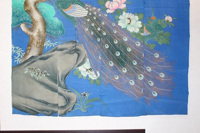 加賀花嫁暖簾松に孔雀文縮緬四巾 蔓結び片喰家紋