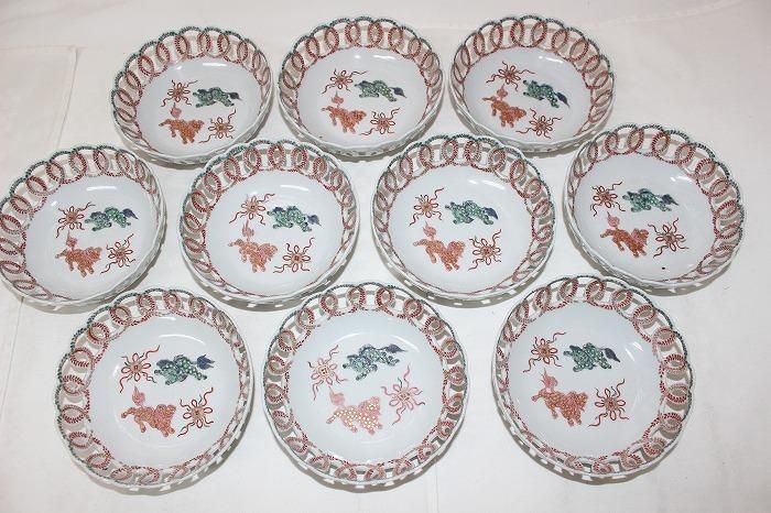 伊万里焼柿右衛門様式色染付獅子文透向付拾客揃