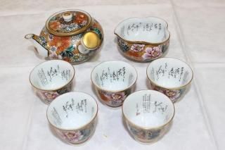 九谷焼色染付細字付花詰文煎茶器揃え 羽利清胡作