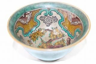 九谷焼毛筆細字付金銀彩松島文抹茶碗 細字三代田村敬星