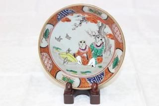 九谷焼色染付庄三手唐子遊び文4寸小皿(飾皿)九谷庄三印