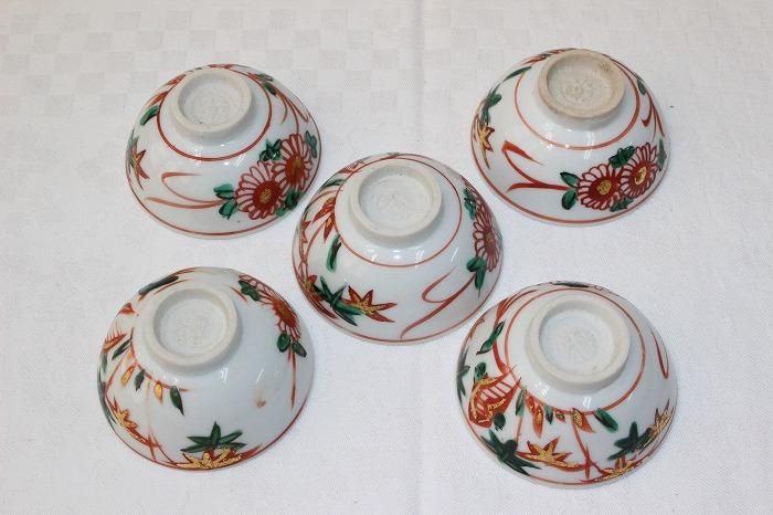 京焼染付赤呉須昂子(コウシ)文酒盃五客揃え 永楽妙全(14代得全の妻)造