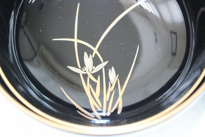 輪島塗堅地布着五君子蒔絵付黒真塗吸物椀五客揃え 輪島塗蒔絵師寺尾玉峰作