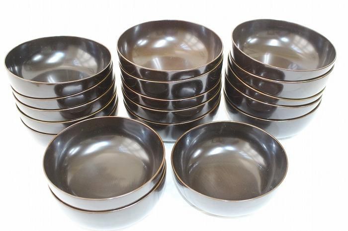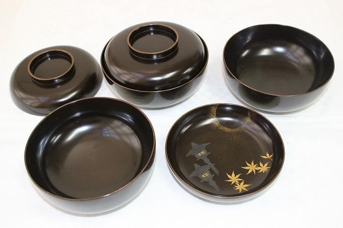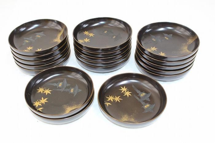 輪島塗本木地造黒月夜楓文蒔絵厚物椀全18客バラ売