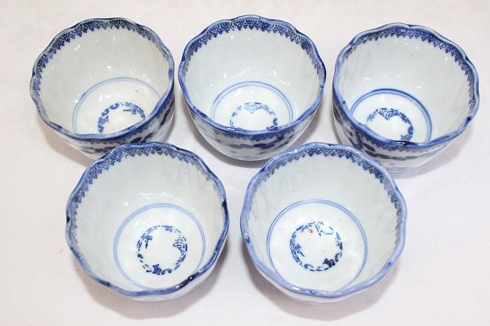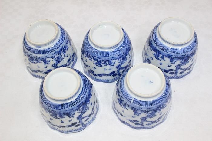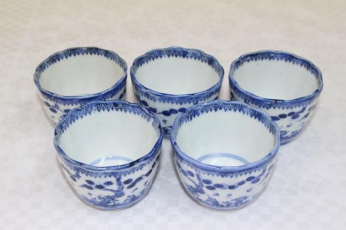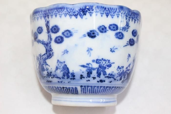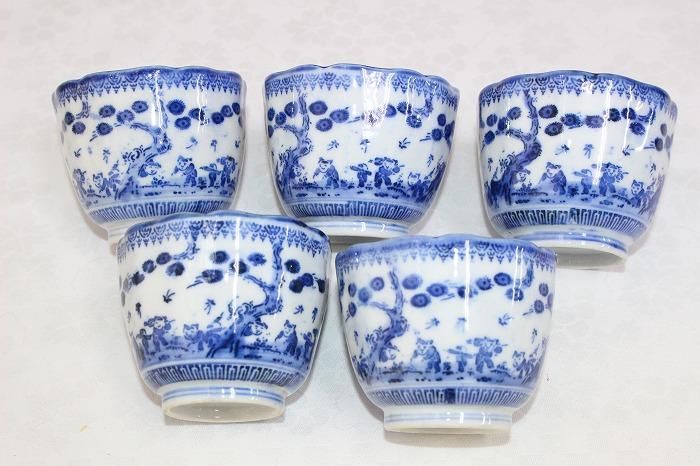 九谷焼転写唐子文凛形蕎麦猪口五客揃え