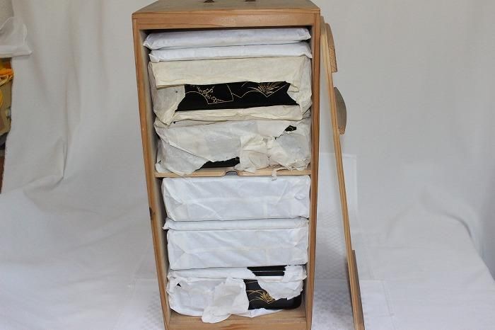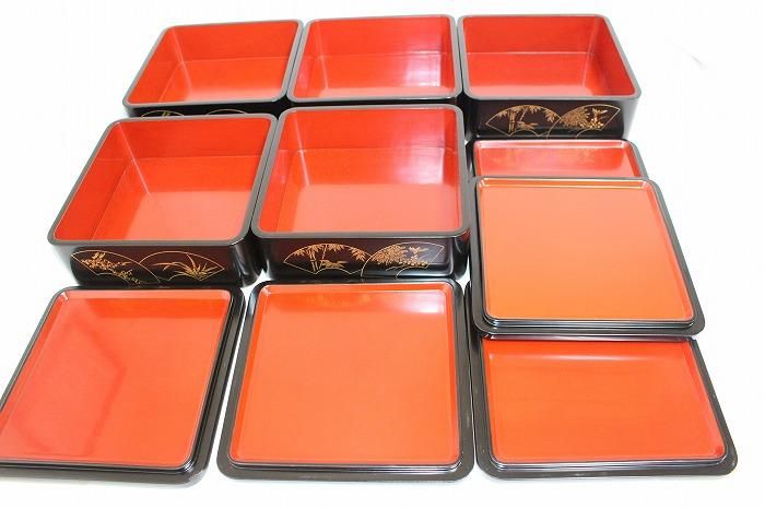 備考 輪島西久保田漆器謹製の蓋付御重五組揃えです。数度の使用跡有りますがハゲ傷などはなく超美品です。
