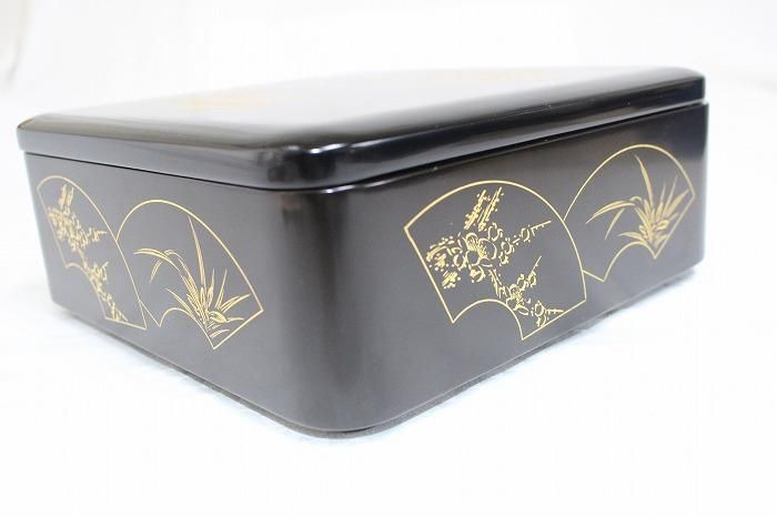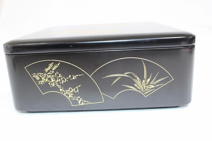 輪島塗堅地布着沈金扇面蒔絵蓋付御重五段組揃 西久保田漆器謹製