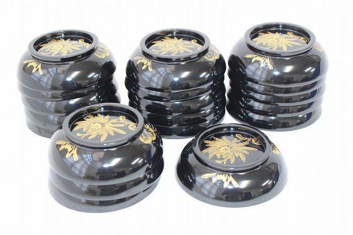 輪島塗本木地造沈金花文蒔絵付厚物椀全19客バラ売