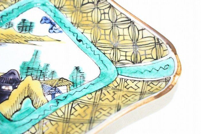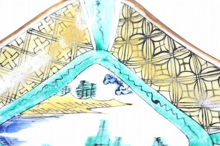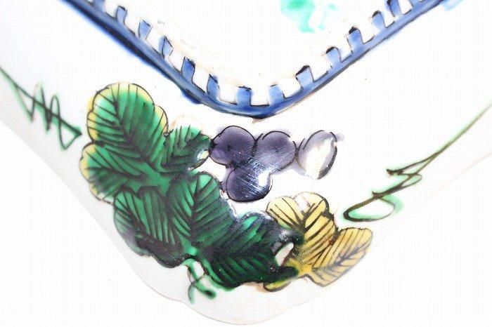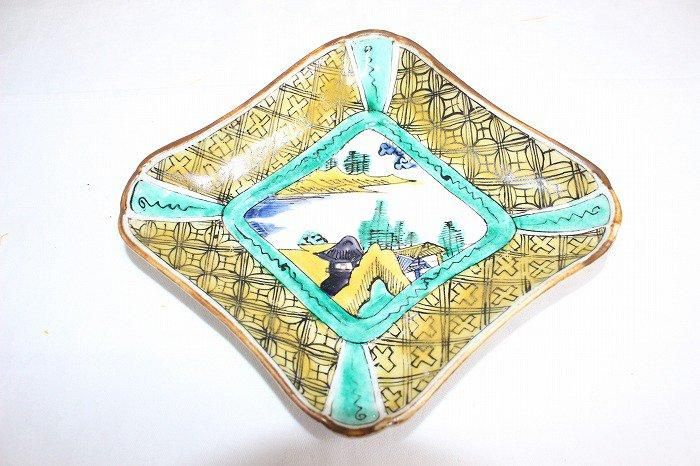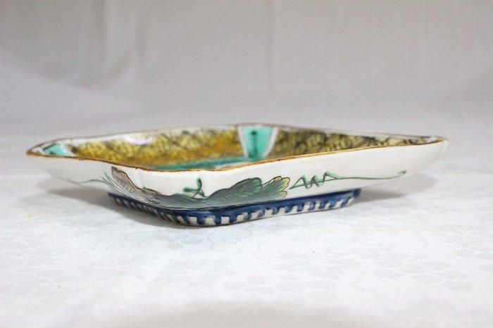 備考 明治初期頃の九谷焼松山窯青手染付菱形向付皿です。