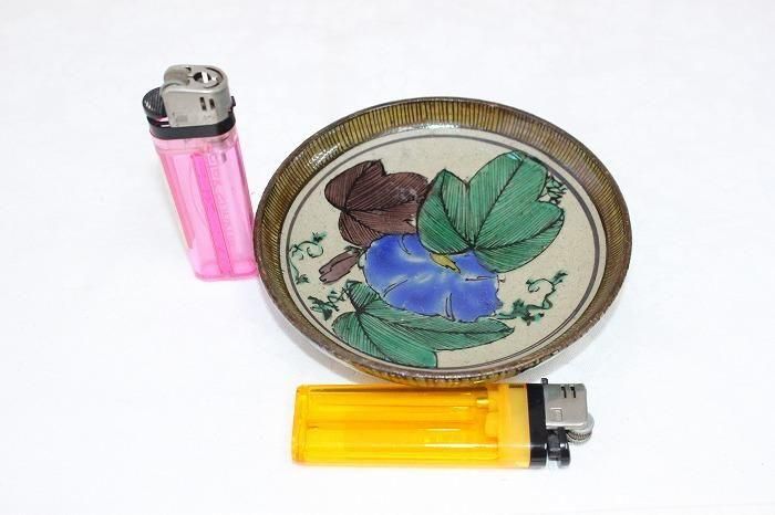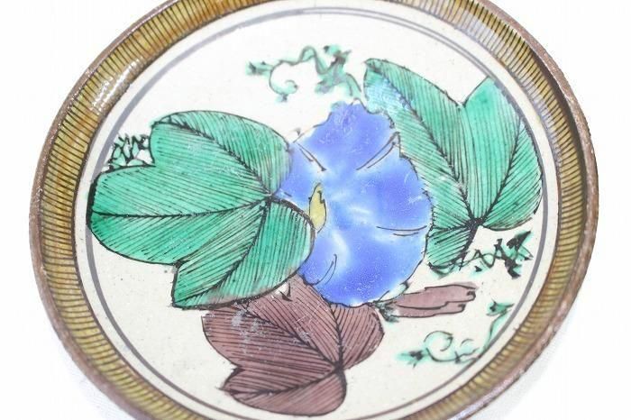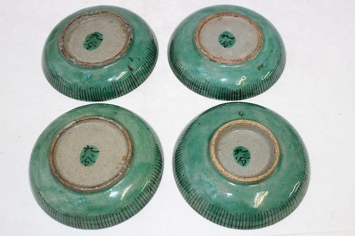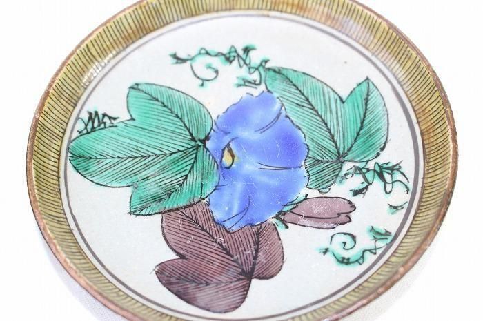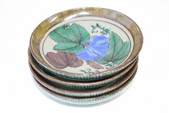 九谷焼青手染付夏花文松山窯造小皿全4客揃え
