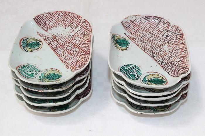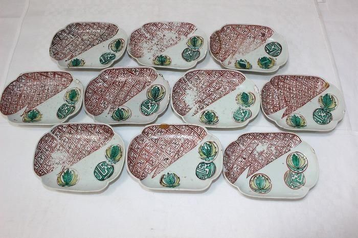 備考 古九谷焼小皿10客です。残念ながら完品なく全品傷有ります。参考品としてお使いください、修復は可能です。