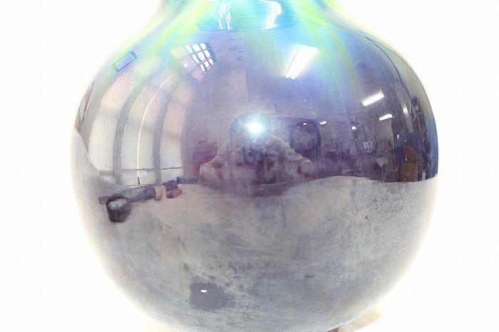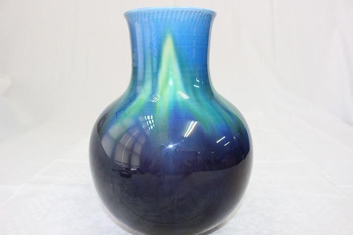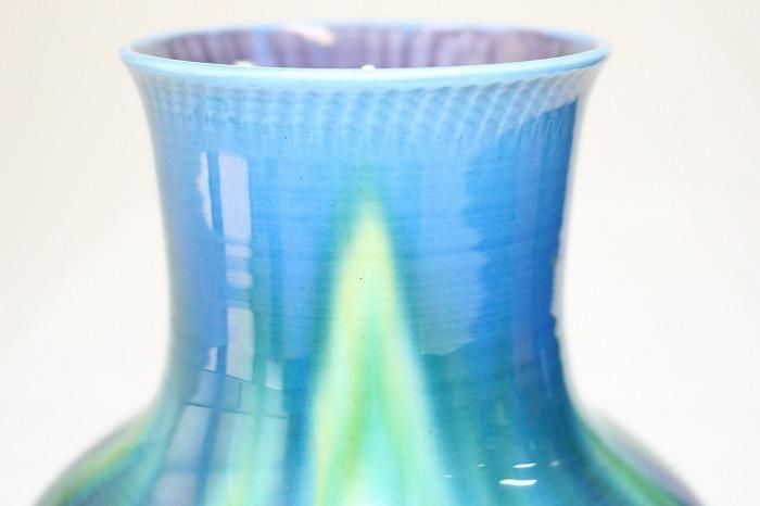九谷焼碧明耀変花生け 人間国宝三代八十吉(正彦銘)作