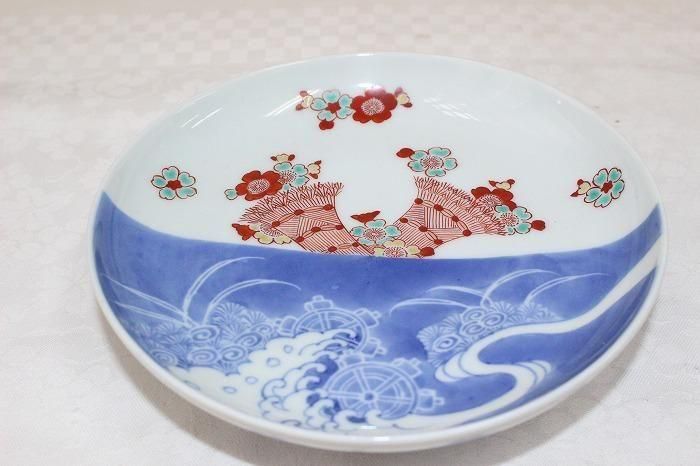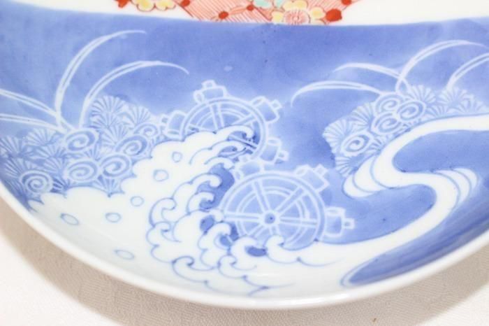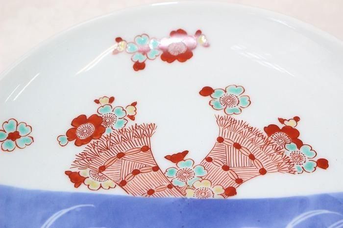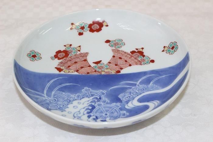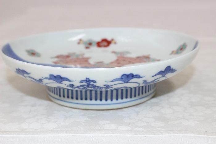 備考 昭和中期辺りに焼かれた、色鍋島焼染付高台皿です。幕末期の人気高い鍋島を真似て焼かれたものです。