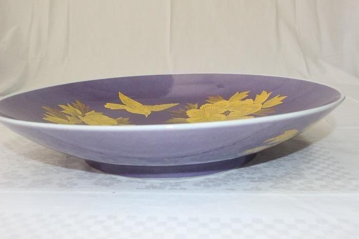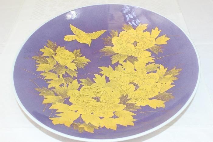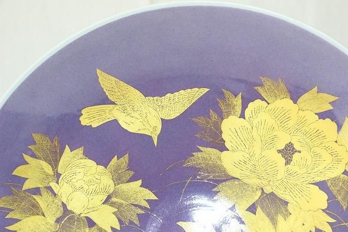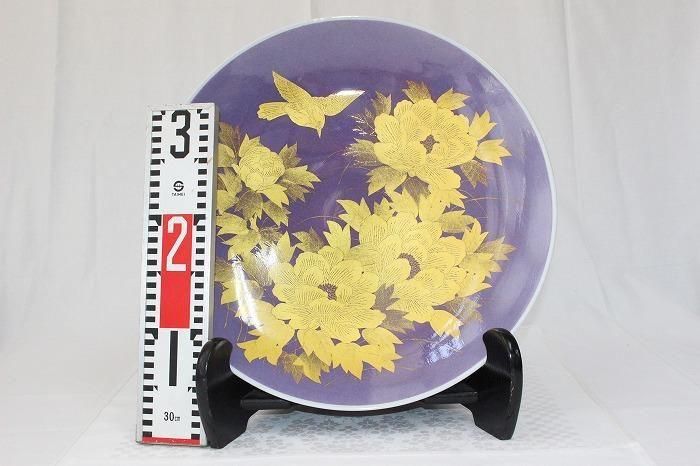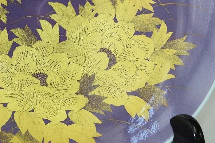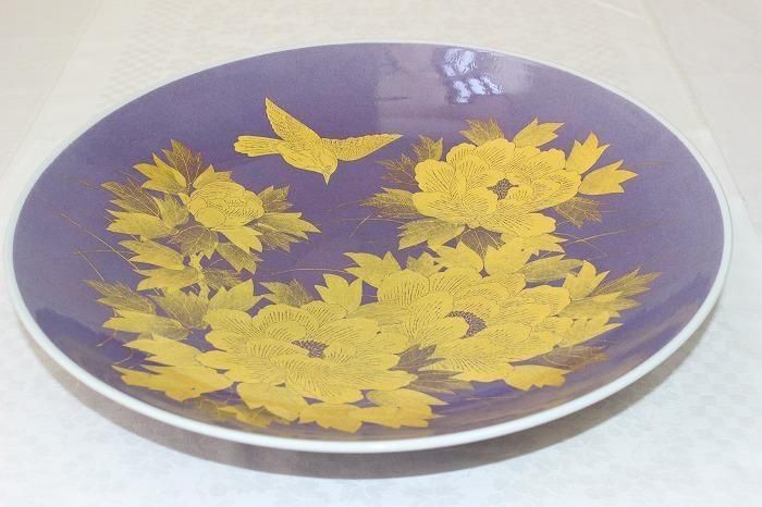 九谷焼釉裏金彩牡丹文尺2寸飾皿 人間国宝吉田美統造