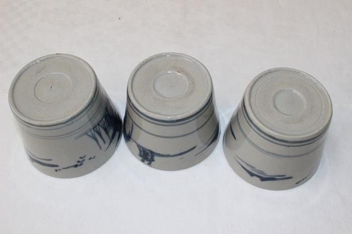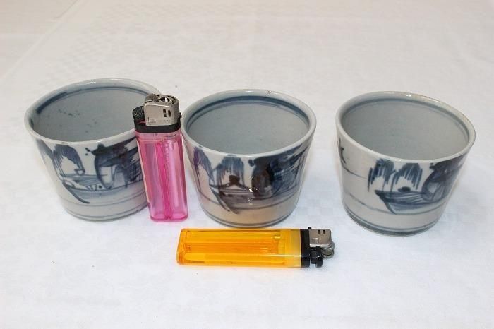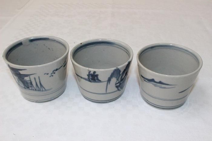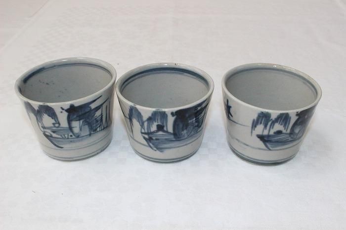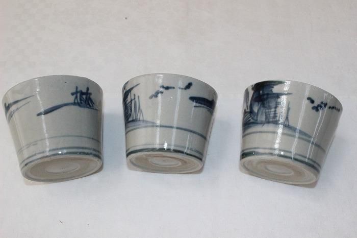 伊万里焼古染付風景文蕎麦猪口全3客揃え