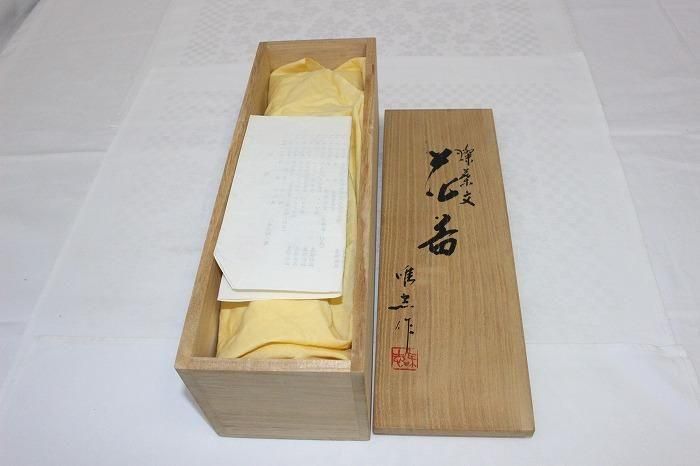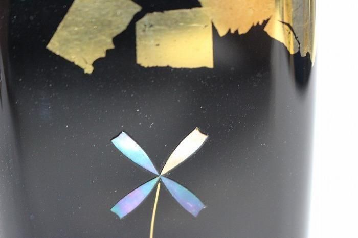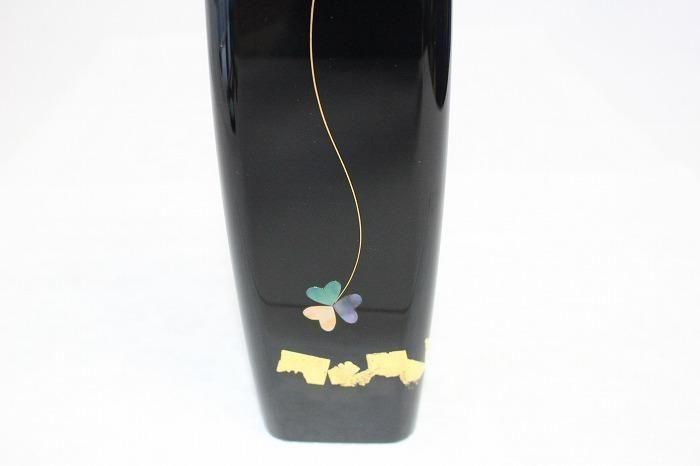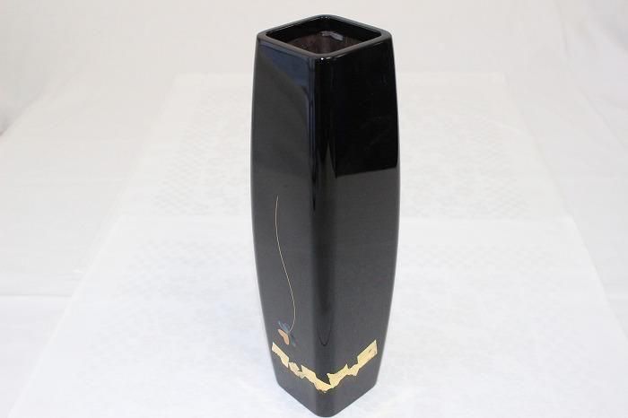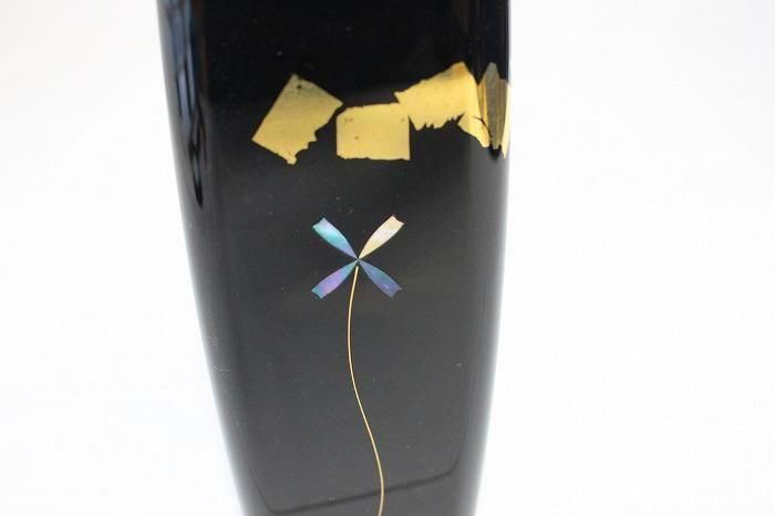 輪島塗堅地布着花蒔絵花器 日展評議員井波唯志作