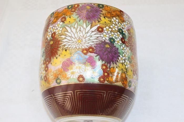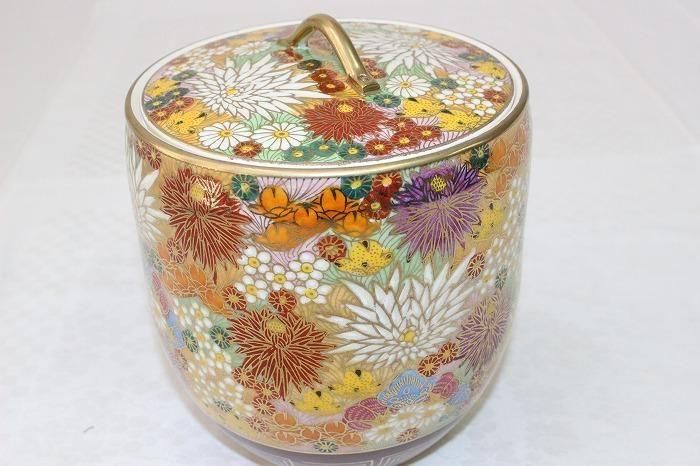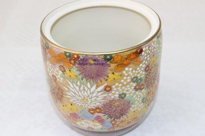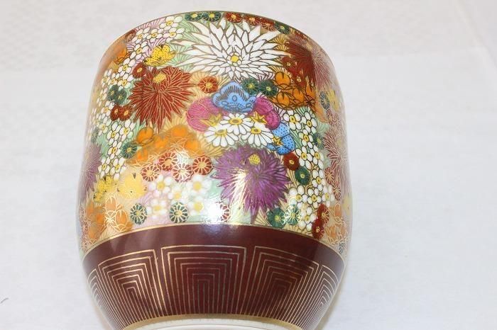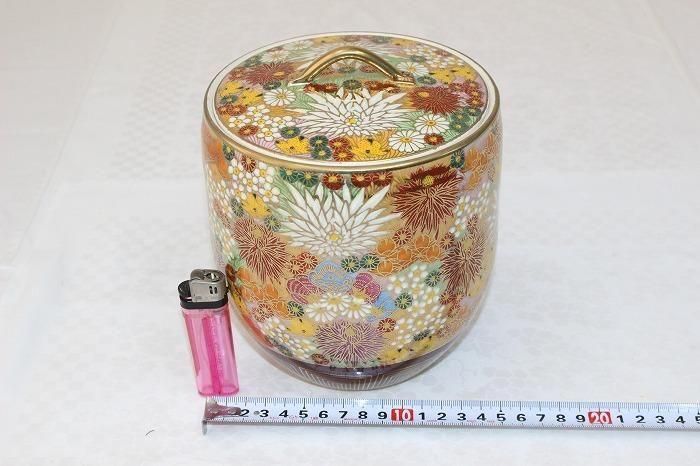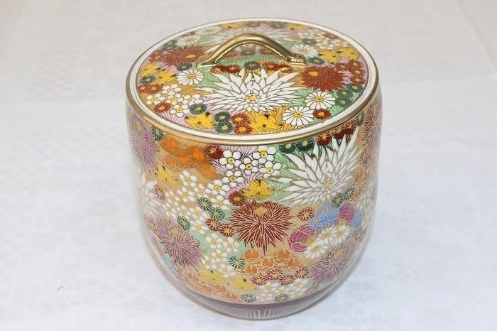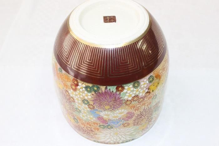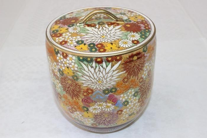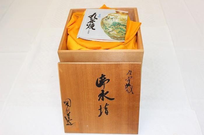 九谷焼金彩花詰文水指 九谷陶仁堂清峰造