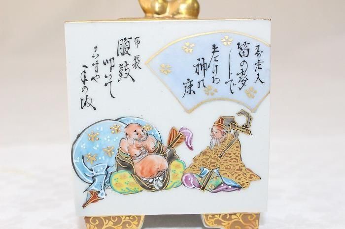 九谷焼色染付小紋格子文瓢形徳利一対 日展作家加登明雄造