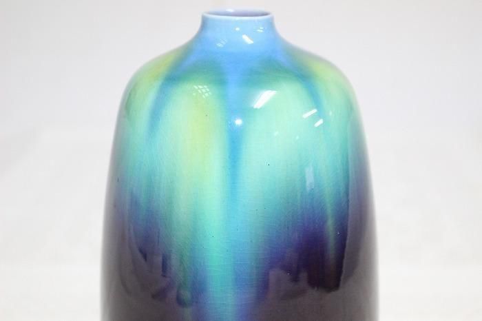 九谷焼碧明耀変飾壺 三代徳田八十吉(正彦銘)作