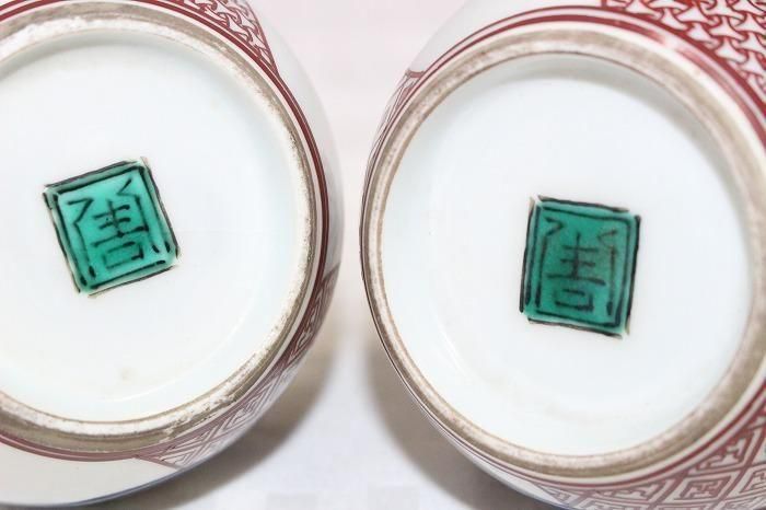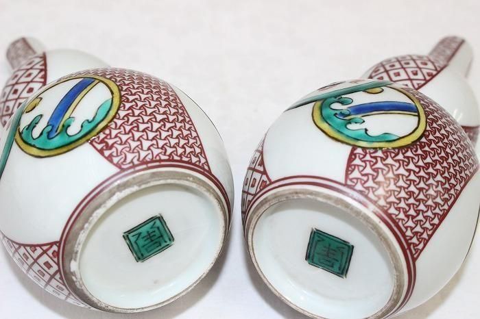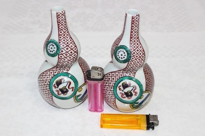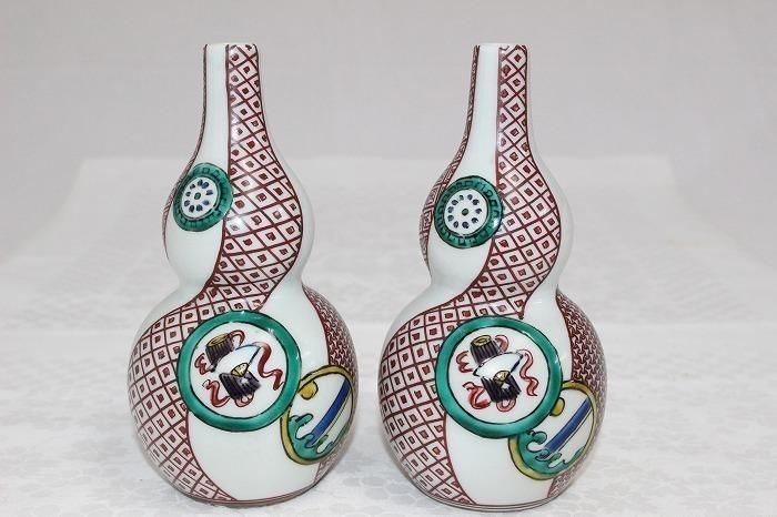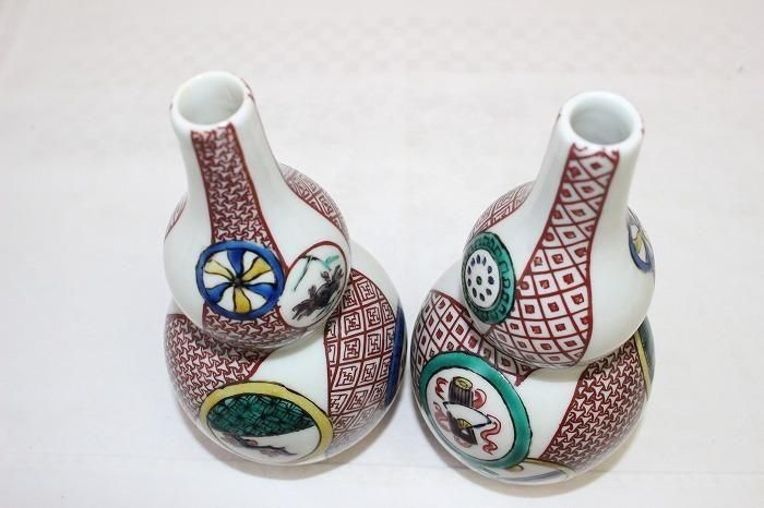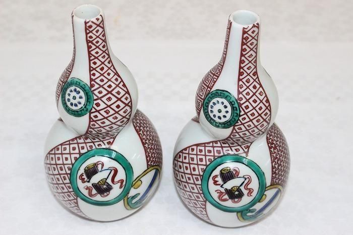 九谷焼色染付間取文瓢形徳利対 人間国宝初代八十吉造