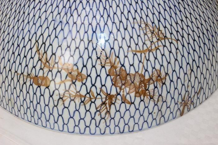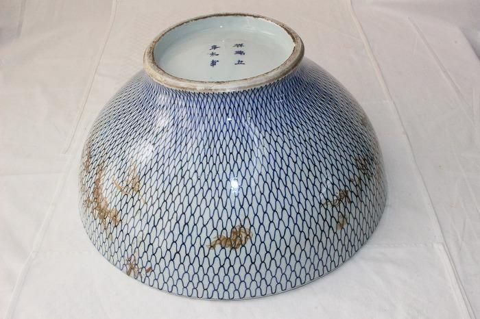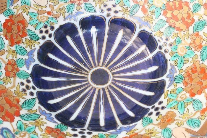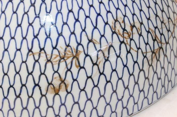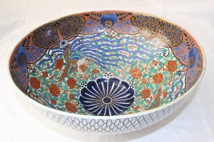 伊万里焼染錦網手瑞鳥菊紋尺三寸大鉢 鉢高さ六寸