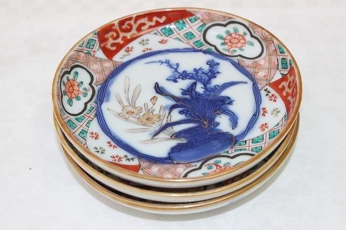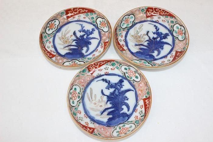備考 明治末期の伊万里焼染錦3寸半小皿3客揃えです。