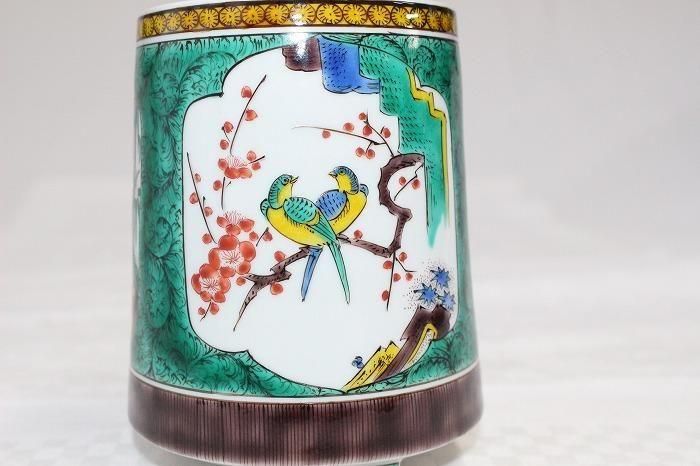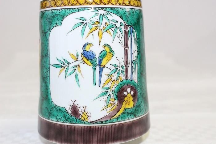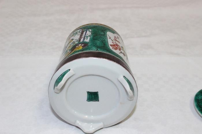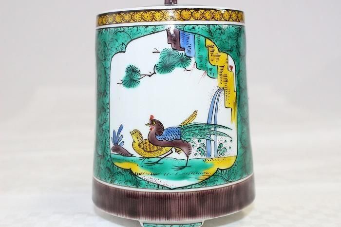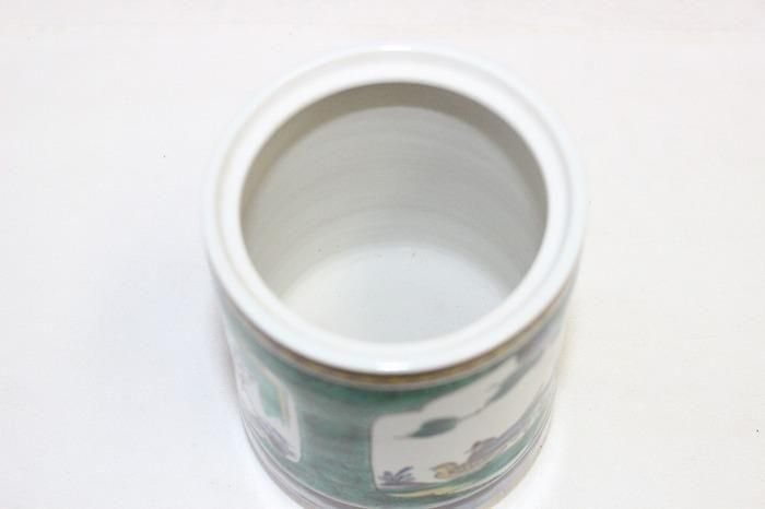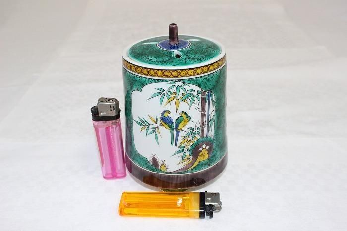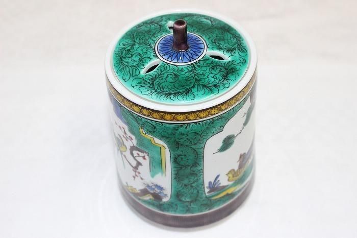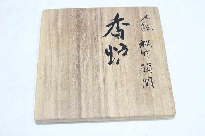 九谷焼色絵松竹梅文筒香炉 九谷日展作家加藤明雄造