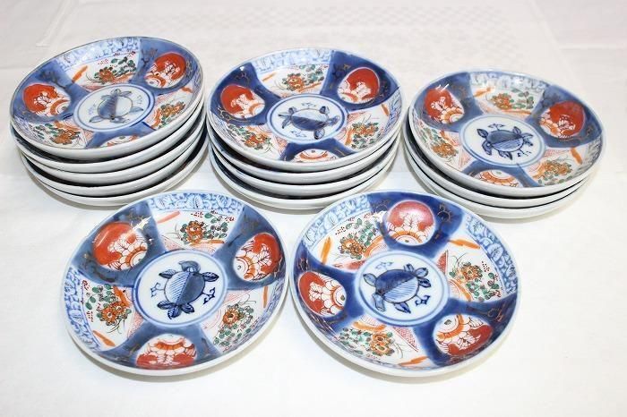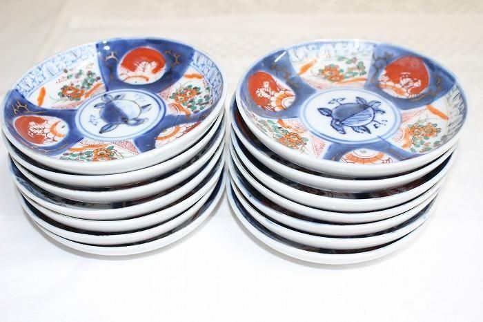 伊万里焼染錦間取花文4寸小皿全14客バラ売