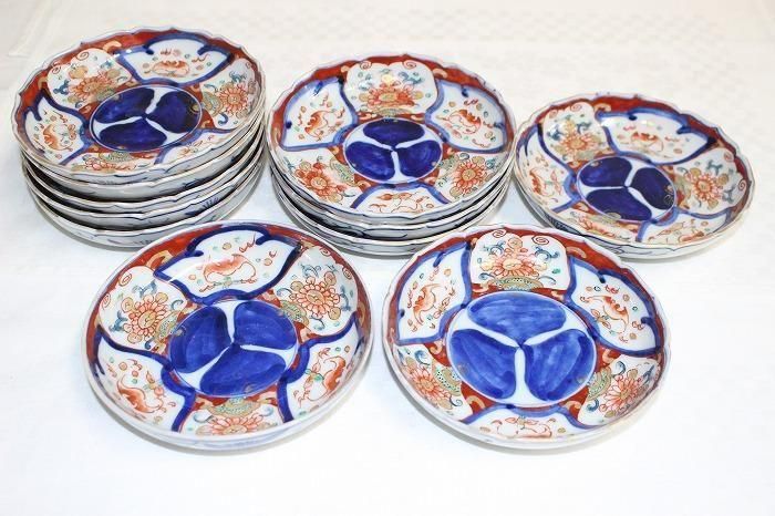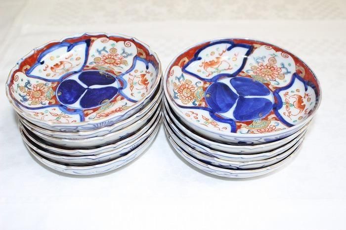 伊万里焼染錦間取花文4寸小皿全11客バラ売