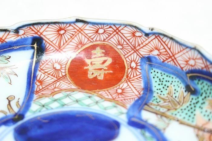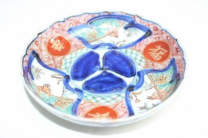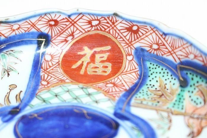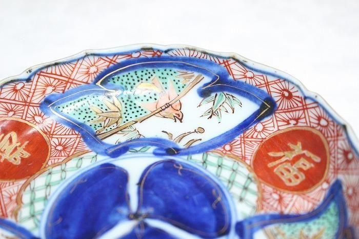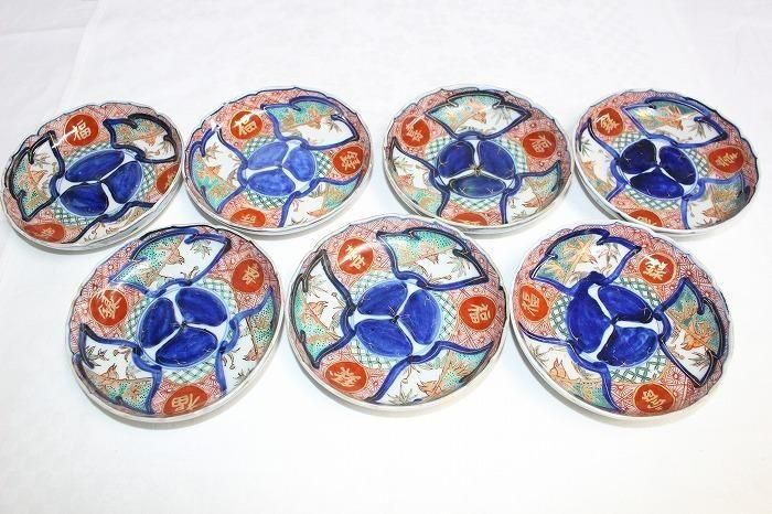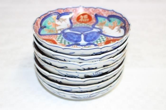 伊万里焼染錦福禄寿文3寸半小皿全7客バラ売