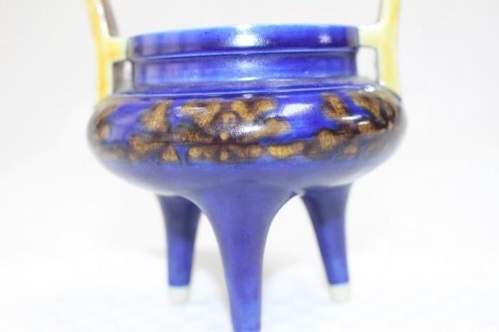 九谷焼深厚釉獅子香炉 柳軒二代徳田八十吉造