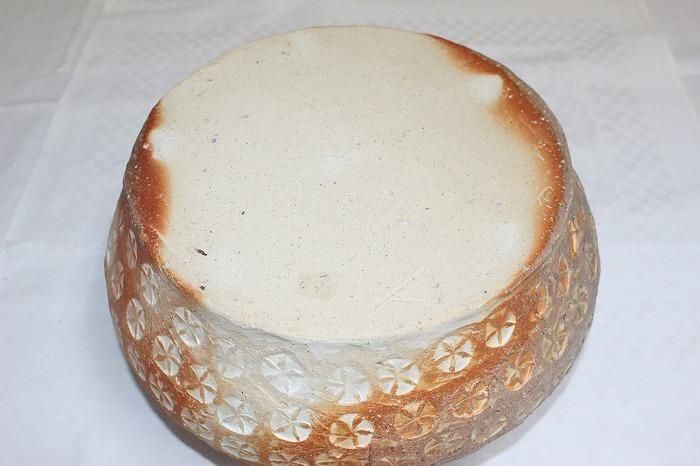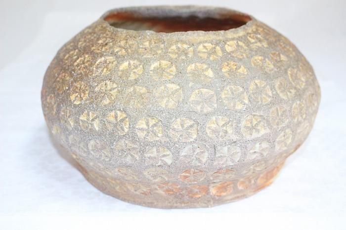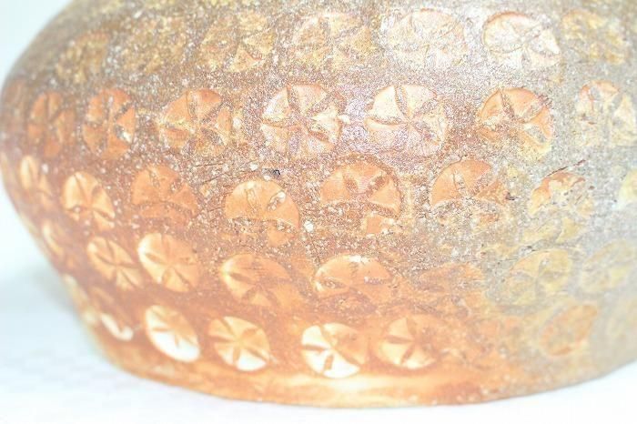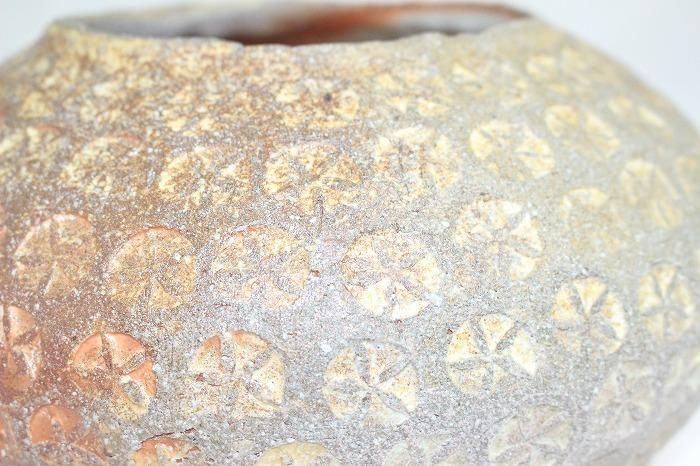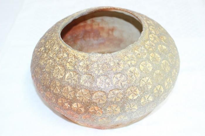 常陸焼半地下穴窯焼き締め花文壺 武藤雄岳作