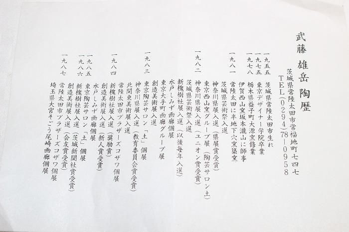 備考 茨木県常陸太田市の陶芸作家、武藤雄岳の作品です。