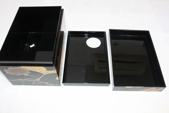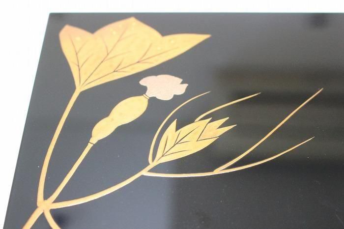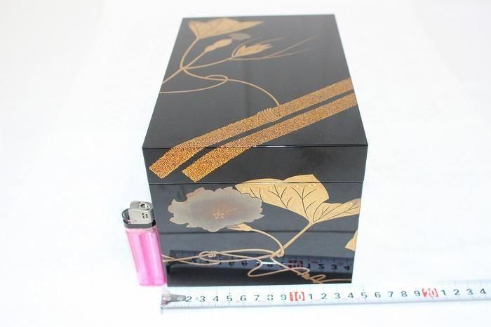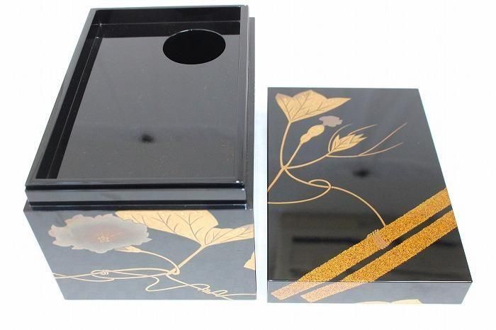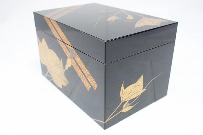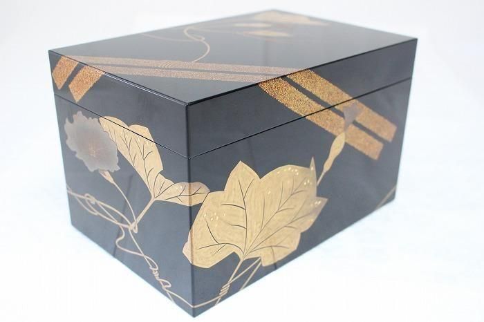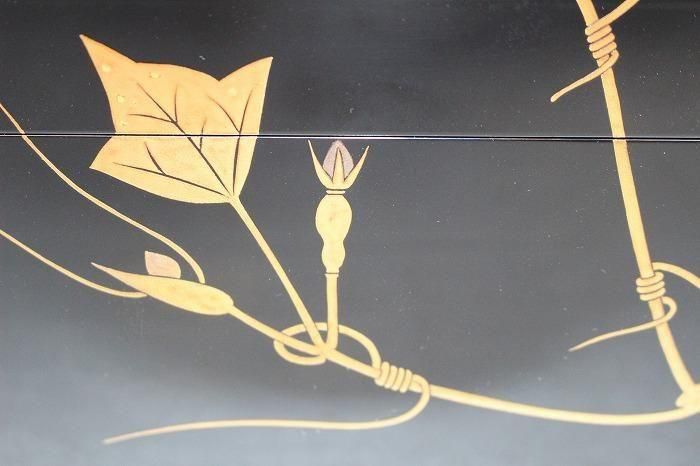 備考 石川県無形文化財指定の小松芳光の作品です。黒真塗に金銀蒔絵で瓢箪を絵した素晴らしい野点茶箱です。