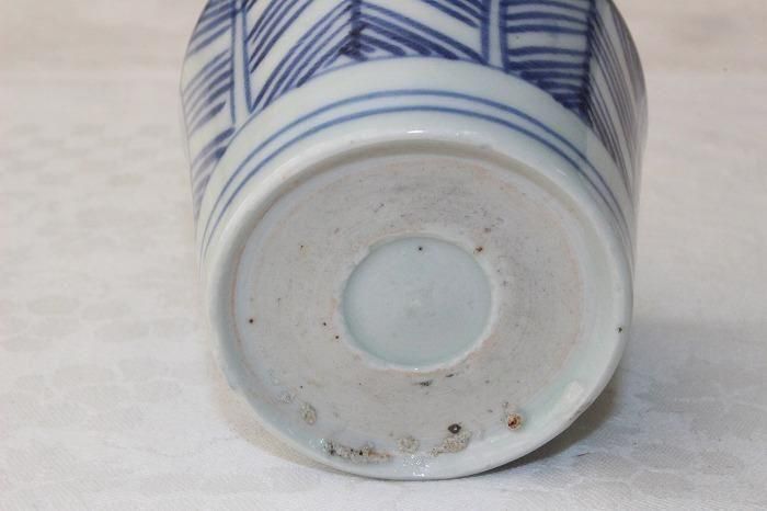 九谷焼色染付小紋格子文瓢形徳利一対 日展作家加登明雄造