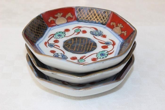 大聖寺伊万里焼染錦花文豆皿3客揃え