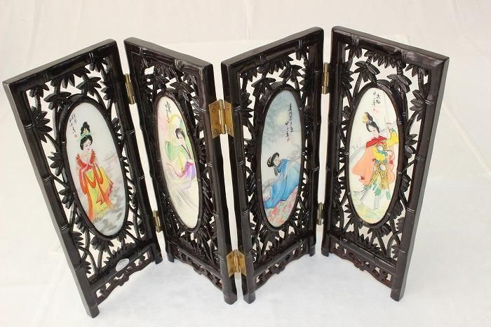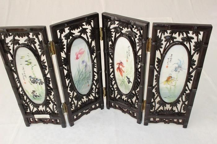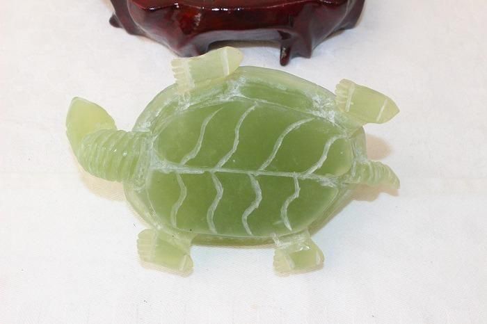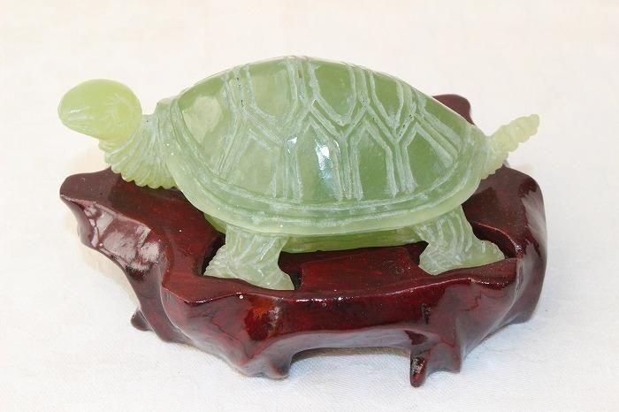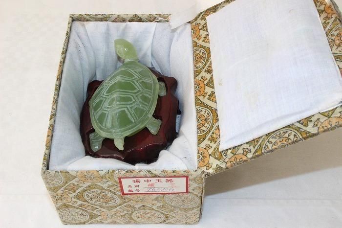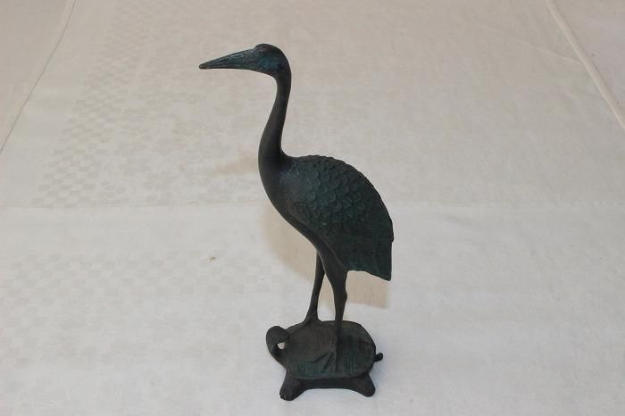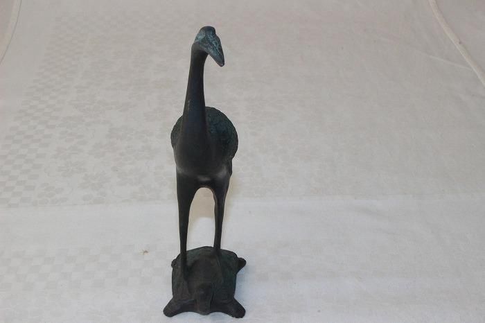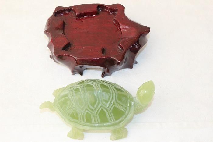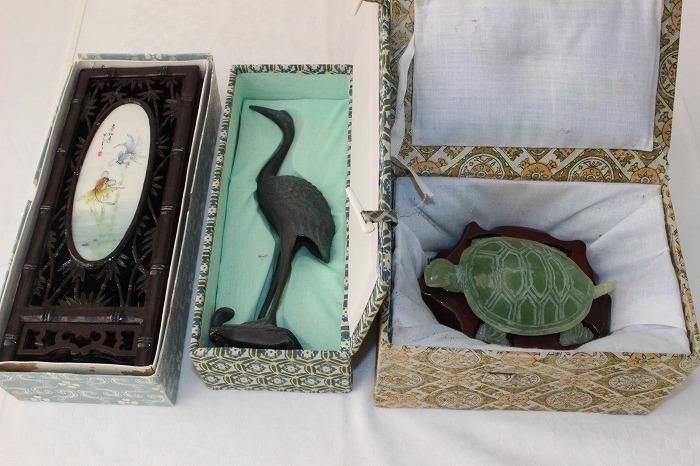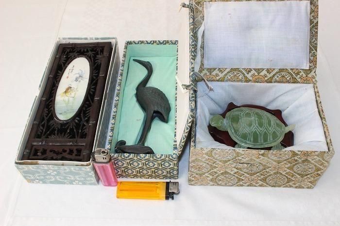 青銅製鶴亀置物、緑石亀置物、小型衝立等中国土産3点