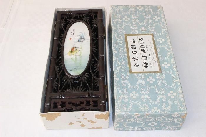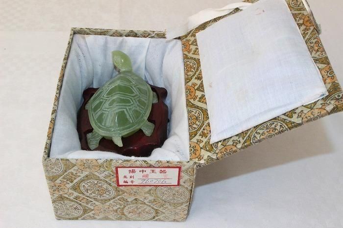 備考 中国旅行の土産品3点です。青銅製の鶴亀置物、緑石製亀置物、「白雲石製品」小型折り畳み衝立です。