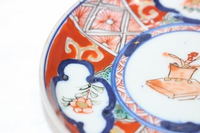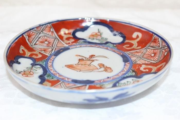 備考 明治中期頃に焼かれた伊万里焼、染錦3寸半小皿です。