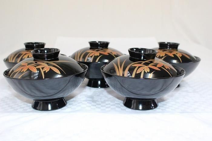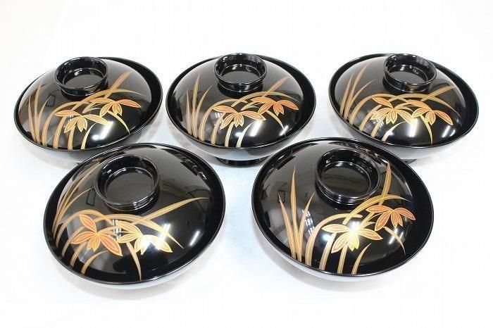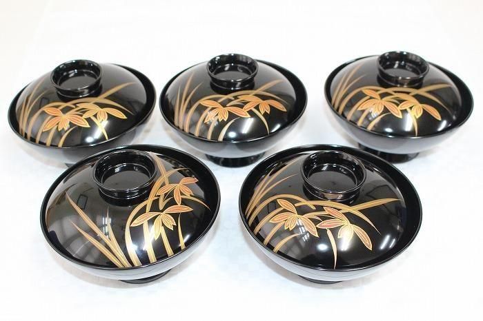備考 山中塗本木地造蒔絵付吸物椀五客揃え未使用保管品です。3組別売りです。