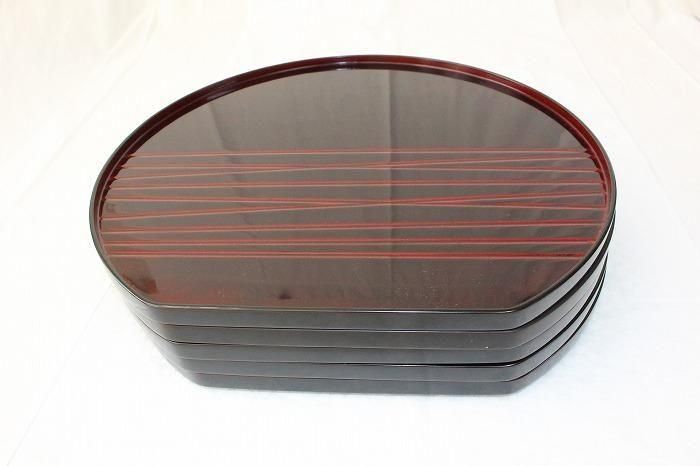 輪島塗本木地造溜塗卓上膳半月盆五客揃 輪島大徹漆器謹製